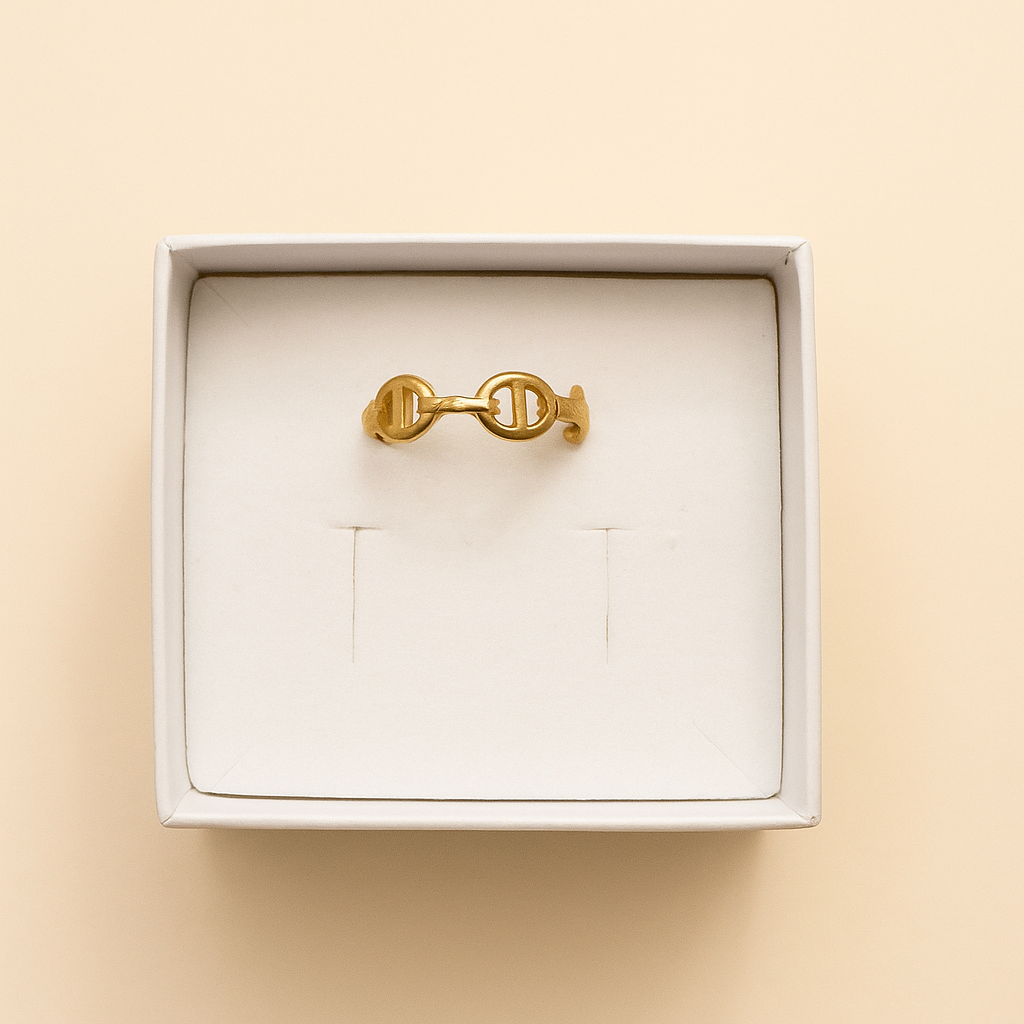 Bague Lilou avec motif grain de café en acier inoxydable, réglable pour un confort optimal. Un bijou tendance pour compléter vos looks avec élégance.