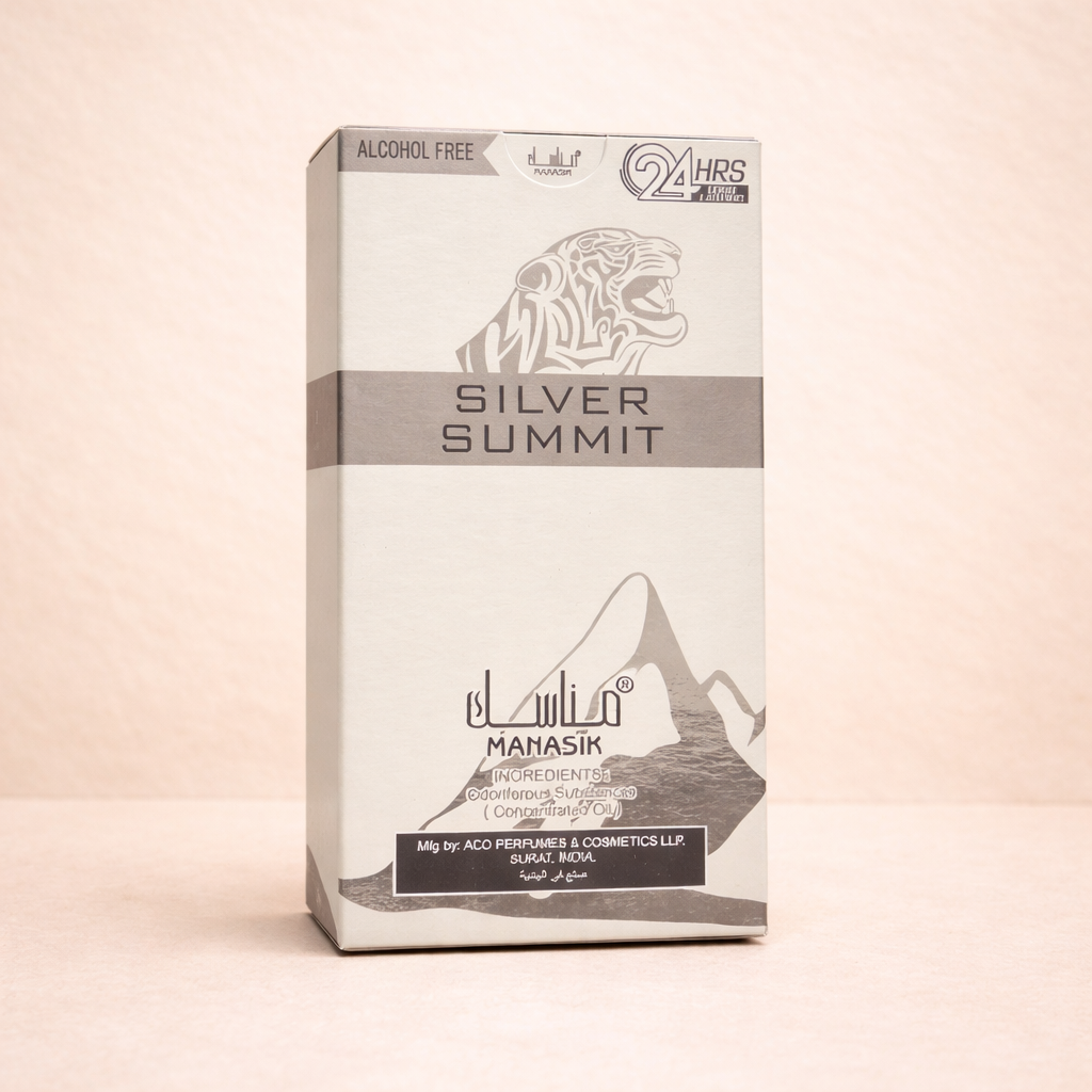 Le parfum huile Silver Summit est une fragrance sans alcool, hautement concentrĂ©e, conçue pour offrir une tenue longue durĂ©e pouvant aller jusqu’à 24 heures. Sa texture huileuse se fond parfaitement sur la peau et libĂšre un sillage frais, Ă©lĂ©gant et masculin. IdĂ©al pour un usage quotidien, il convient parfaitement aux peaux sensibles.