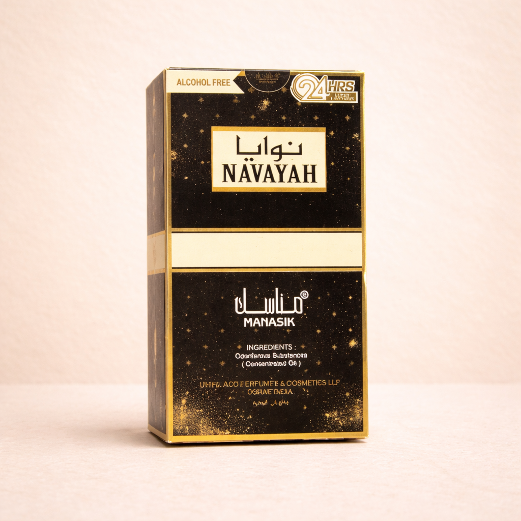 Le parfum huile Navayah est une fragrance sans alcool, hautement concentrĂ©e, offrant une tenue longue durĂ©e jusqu’à 24 heures. Sa texture huileuse s’applique directement sur la peau pour libĂ©rer un sillage intense, Ă©lĂ©gant et sophistiquĂ©. IdĂ©al pour les amateurs de parfums orientaux modernes, il convient Ă©galement aux peaux sensibles.